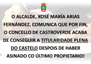 XOSÉ MARÍA ARIAS FERNÁNDEZ, ALCALDE PRESIDENTE DO CONCELLO DE CASTROVERDE, CELEBRA QUE POR FIN ESTE CONCELLO ACABA DE FACERSE COA PROPIEDADE PLENA DO CASTELO DE CASTROVERDE!