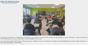 O Concello de Castroverde, en colaboración con El Progreso, fixo entrega, o mércores 26 de novembro de 300 exemplares do diario El Progreso, a todo o alumnado do CPI de Castroverde, así como ao profesorado e resto de traballadores do centro.