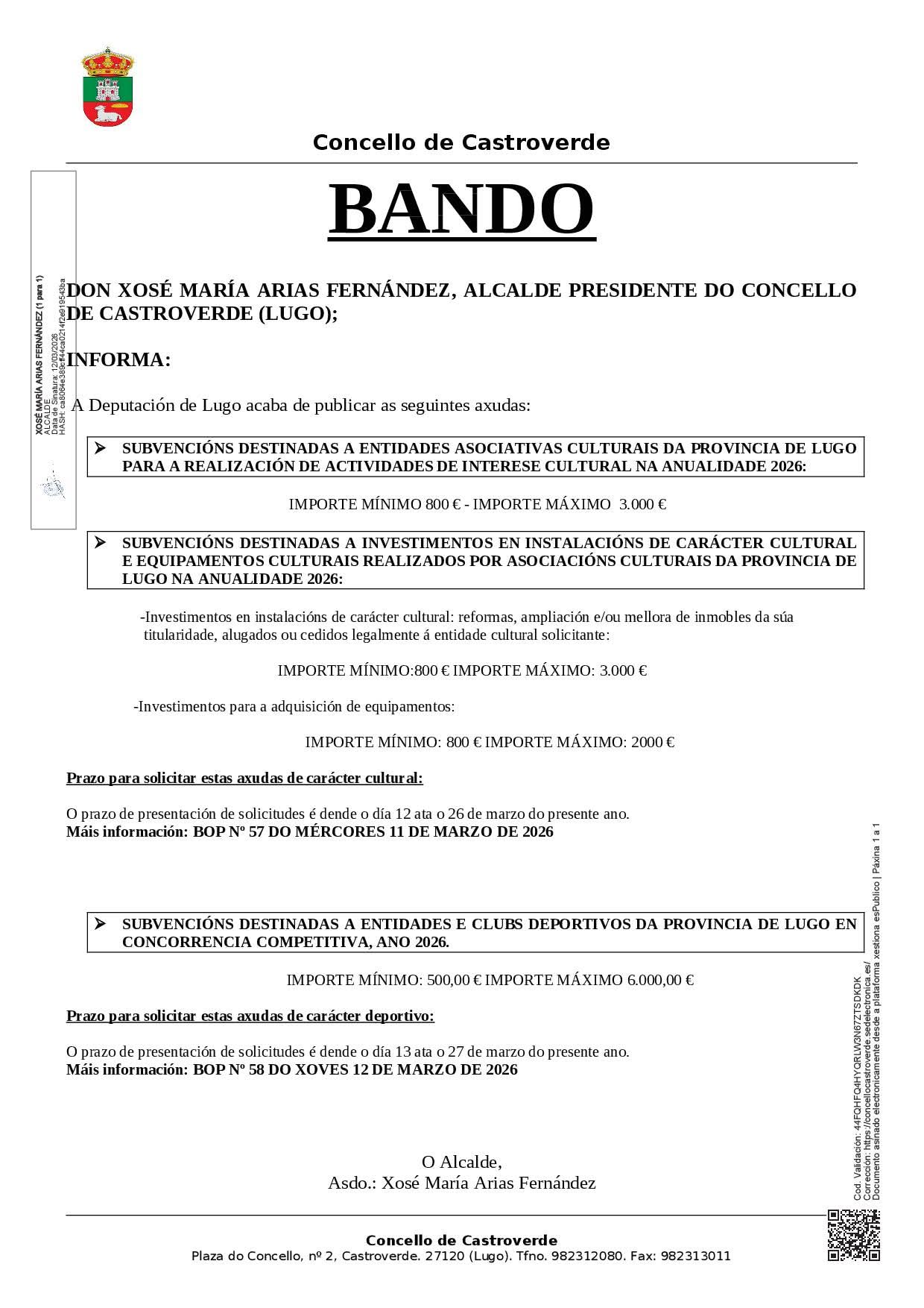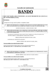 BANDO INFORMATIVO SOBRE AXUDAS A ENTIDADES CULTURAIS E DEPORTIVAS SEN ÁNIMO DE LUCRO